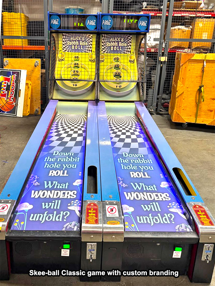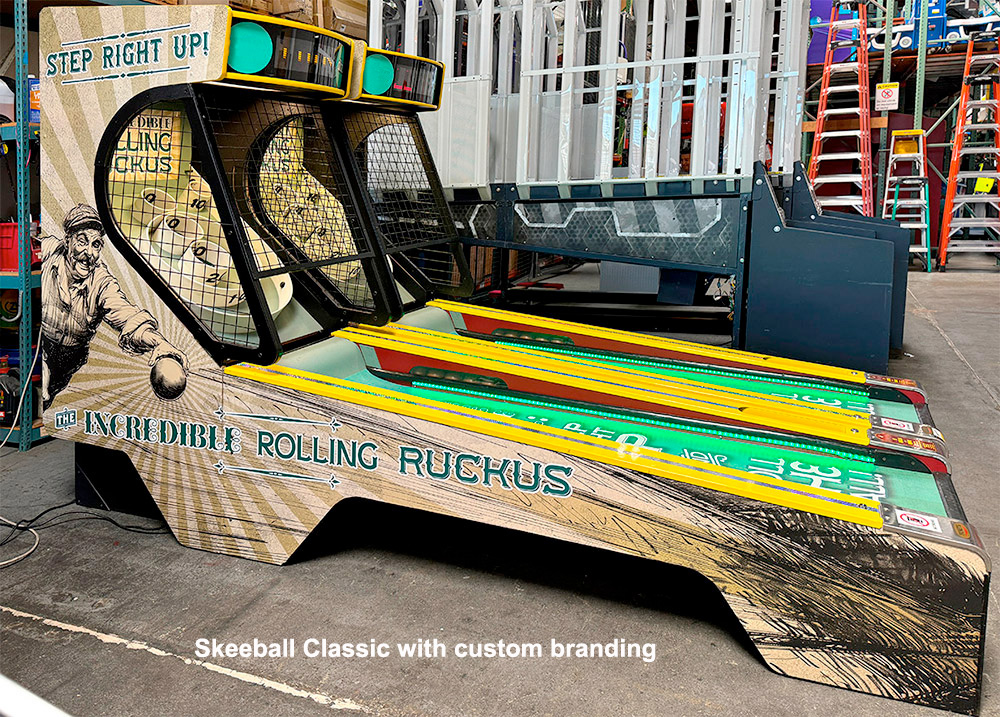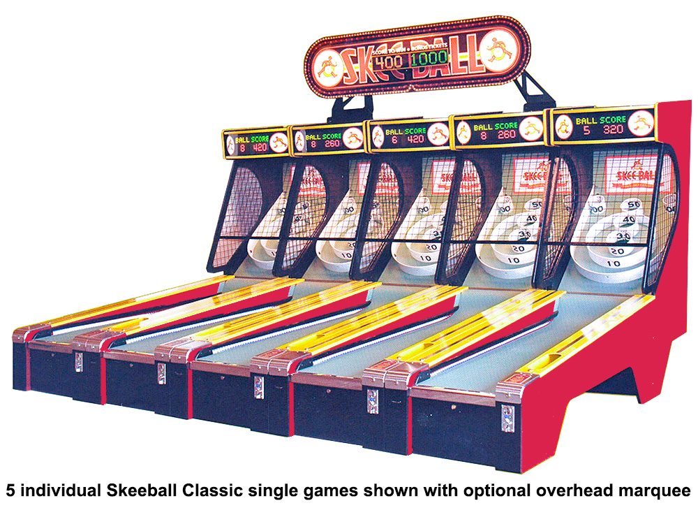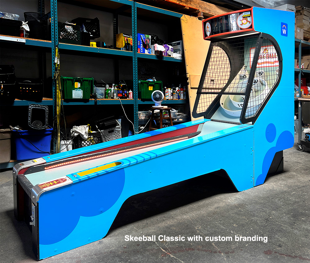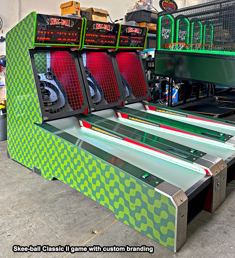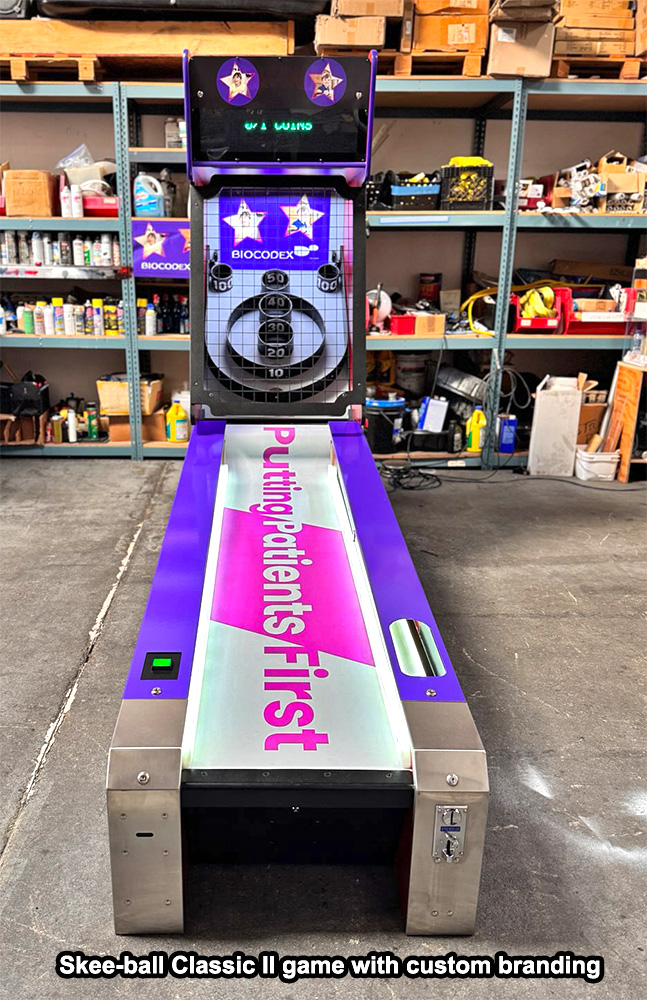 Video Amusement has the most extensive inventory of SKEEBALL/ SKEE-BALL Classic Carnival Arcade Game in stock on the West Coast and ready for your guests to enjoy. Our graphic team can customize Skeeball/ Skee-Ball Classic alley games with your company logo or custom graphics to make your company stand out at any event or trade show. To further enhance the attractiveness of the rented SKEEBALL/ SKEE-BALL Classic Carnival Arcade Game, we offer optional colorful Marquee that can be installed on a single or multi-game setup. Let’s roll the ball with Skeeball/ Skee-Ball Classic alley games!