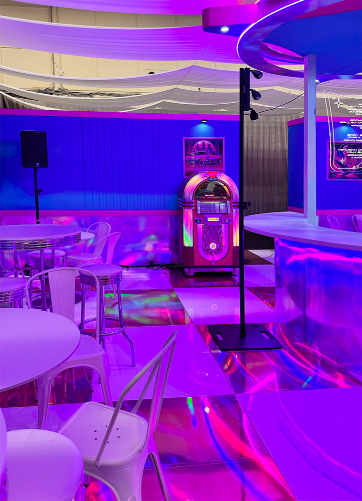 Rented Rockola bubbler jukebox holds 100CDs with your choice of music. You and your guests can select the music you want to hear or add your customized CD. CD Jukebox is an excellent alternative to a DJ or sound system because of the price, style, and incredible classic sound that a jukebox can offer.