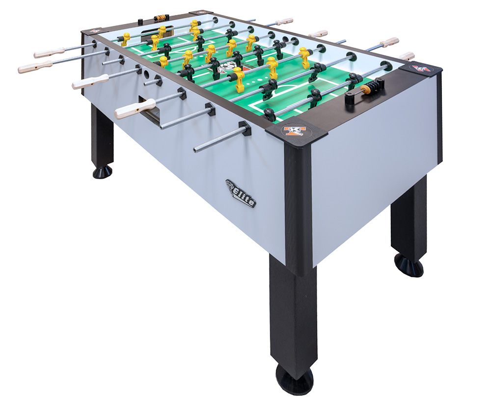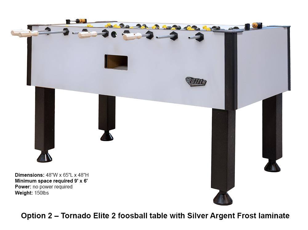 Option 2: The new Tornado Elite 2 foosball table, featuring a Silver Argent Frost laminate finish.